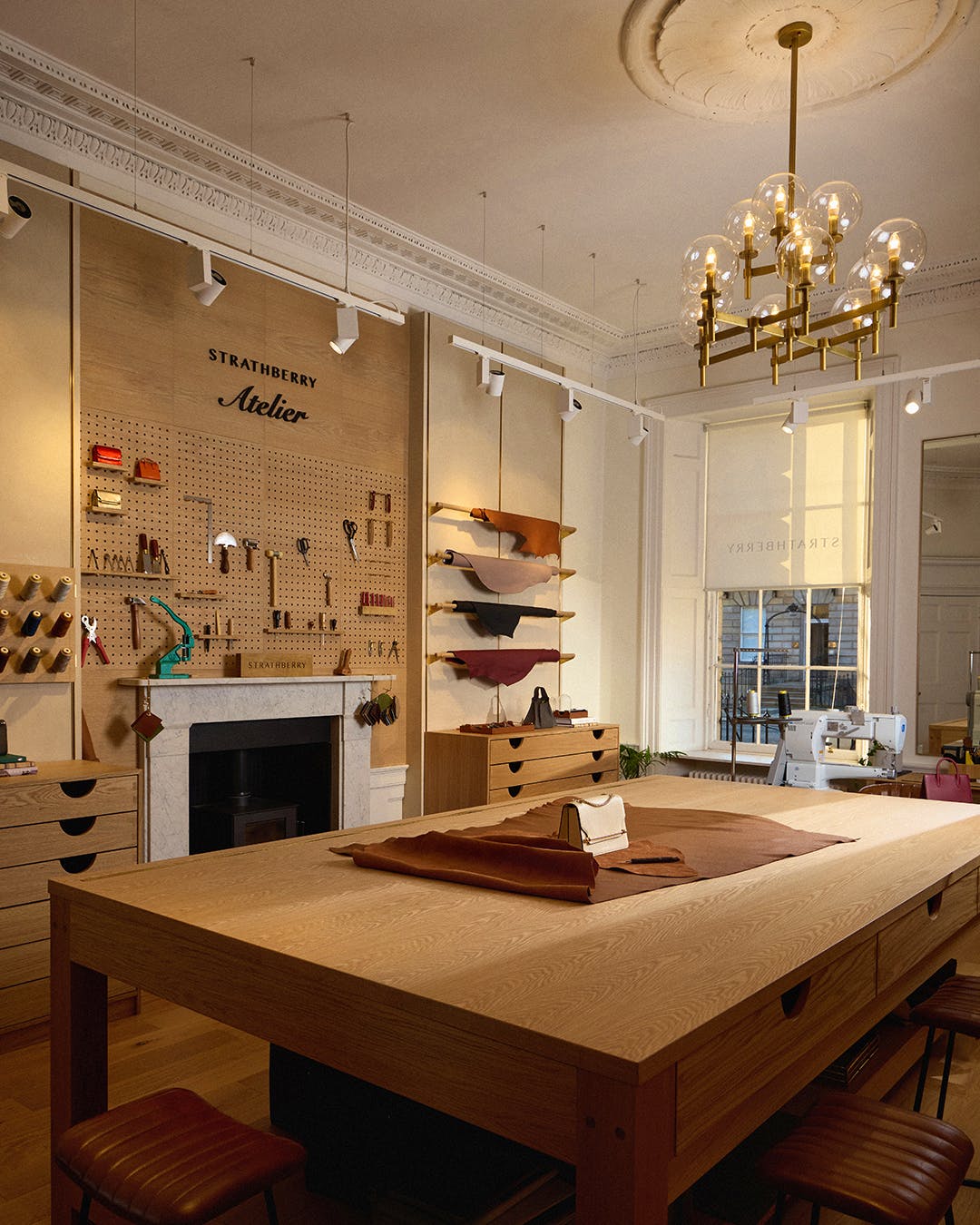 エディンバラ・タウンハウスに位置する、女性が主導するアトリエは、精密さ、忍耐、そして芸術性に捧げられた空間です。ヘッドクラフトパーソンであるマノンが率いるアトリエでは、アイデアが革によって形作られています──シルエットが洗練され、エッジ(コバ)は手作業でペイントされ、細部に至るまで細心の注意が払われます。