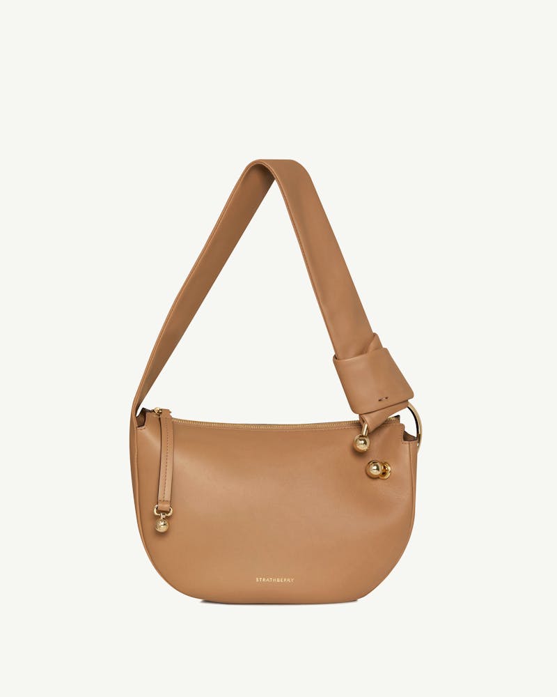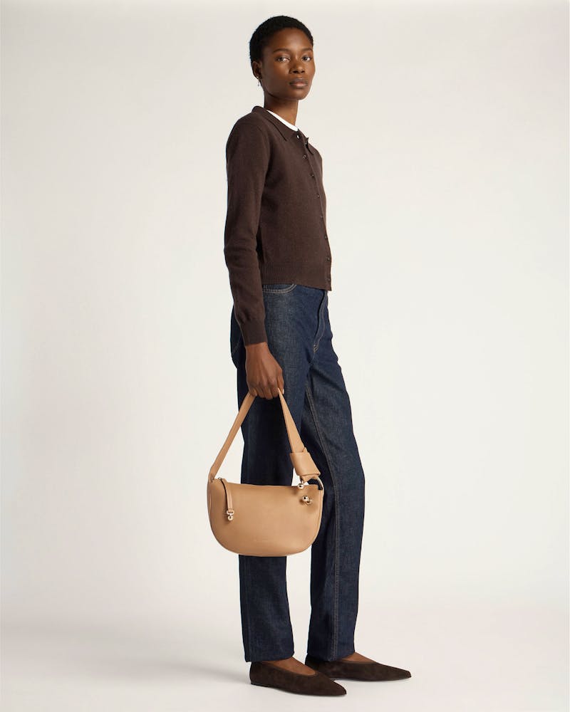 Halo の半月型のシルエットは、アクティブなスタイル合わせてデザインされた、昼から夜まで一日中活躍するアイテム。柔らかな構造の形状は、体に心地よくぴったりフィットし、バッグに合わせて Music Barをアレンジした金具が、調和と一体感を象徴する優雅な「光輪」のように連続した円を形成。バッグにあしらわれた結び目のあるストラップが、持つ人のニーズに合わせて、快適さを追求しディテールまでこだわった職人技を反映。手で持っても、ショルダーバッグとしても着用可能、ドレスアップにもカジュアルで洗練されたスタイルにも使える万能な相棒です。