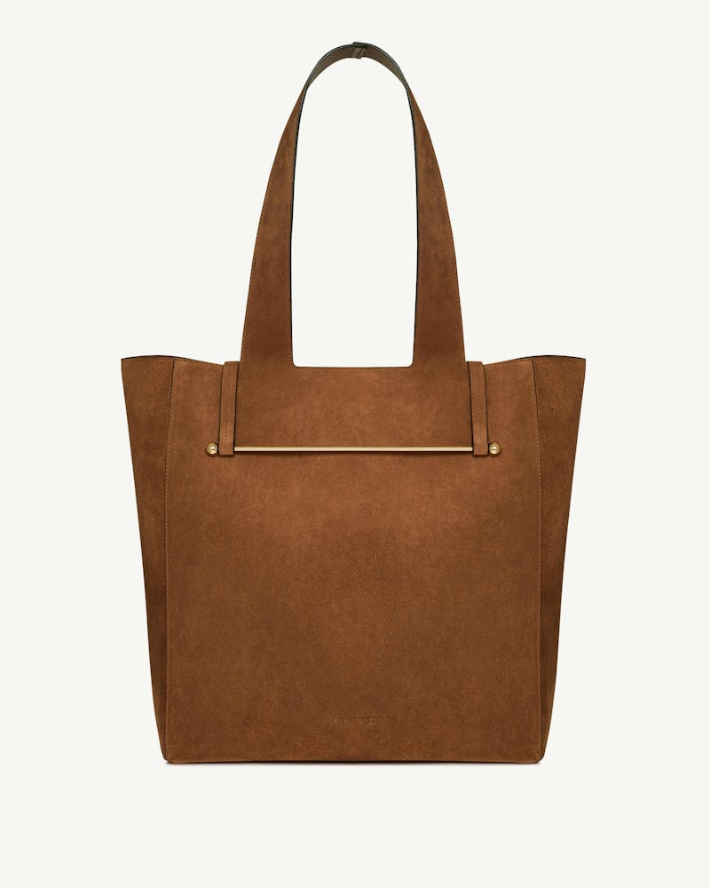 メロディトートは、ストラスベリーの目印ミュージックバーを留め具に採用、幅広で快適なストラップと広々としたインテリアが特徴のソフトなトートバッグです。アイコニックなストラスベリートートのインスピレーションの元になったヴィンテージ・ミュージックフォリオをベースにデザインされました。しなやかなレザーがタイムレスな贅沢さと日常の実用性を兼ね備えています。内部には取り外し可能のポーチ付き、貴重品を整理して安全に持ち運びできます。アースカラーの秋らしい色合いのカプセルコレクションは、どんな服装にも自然にマッチします。