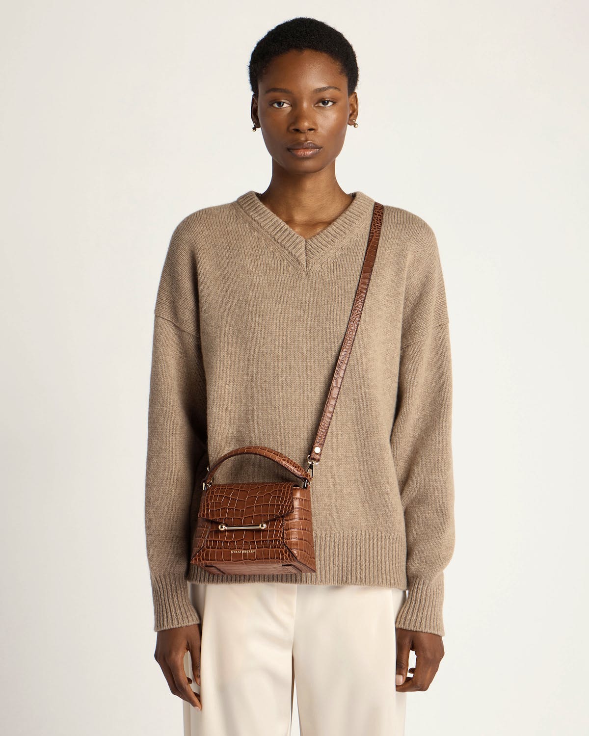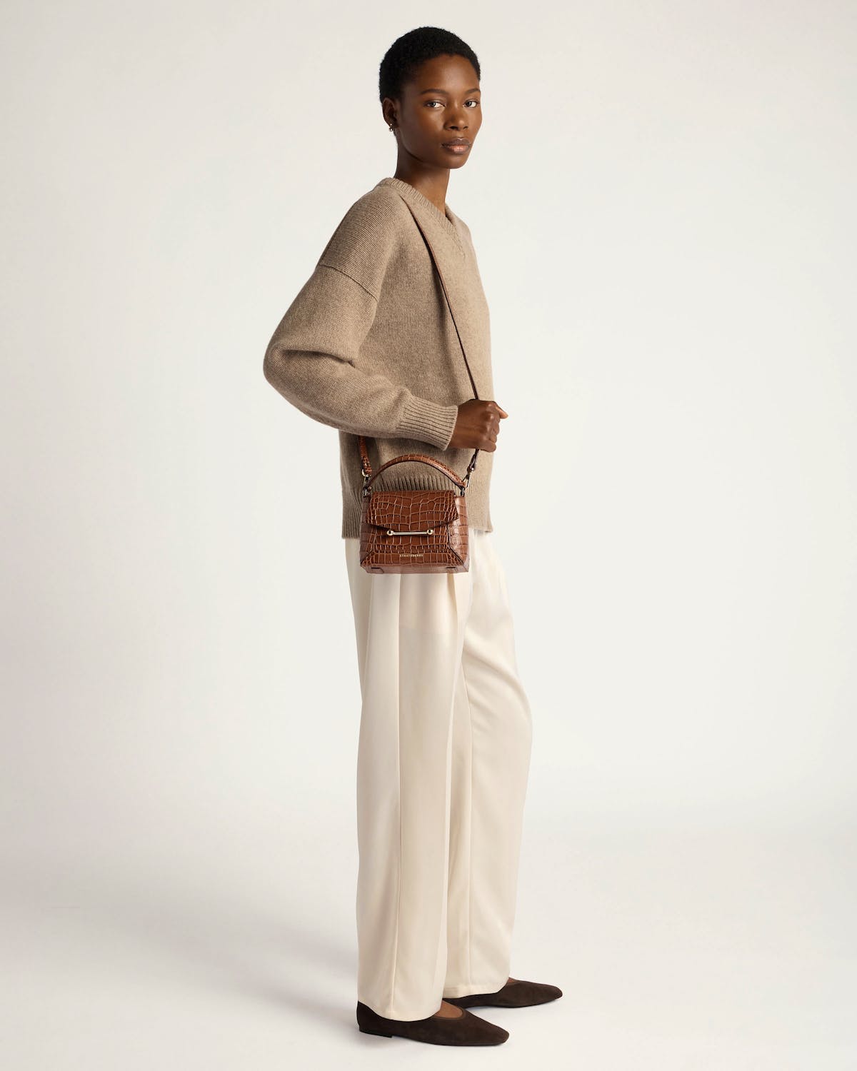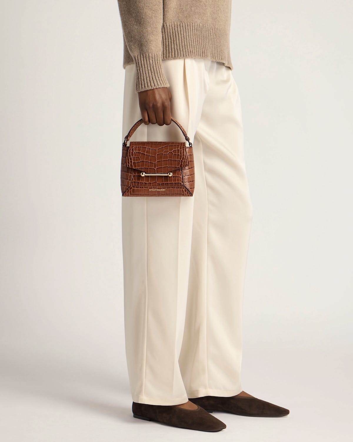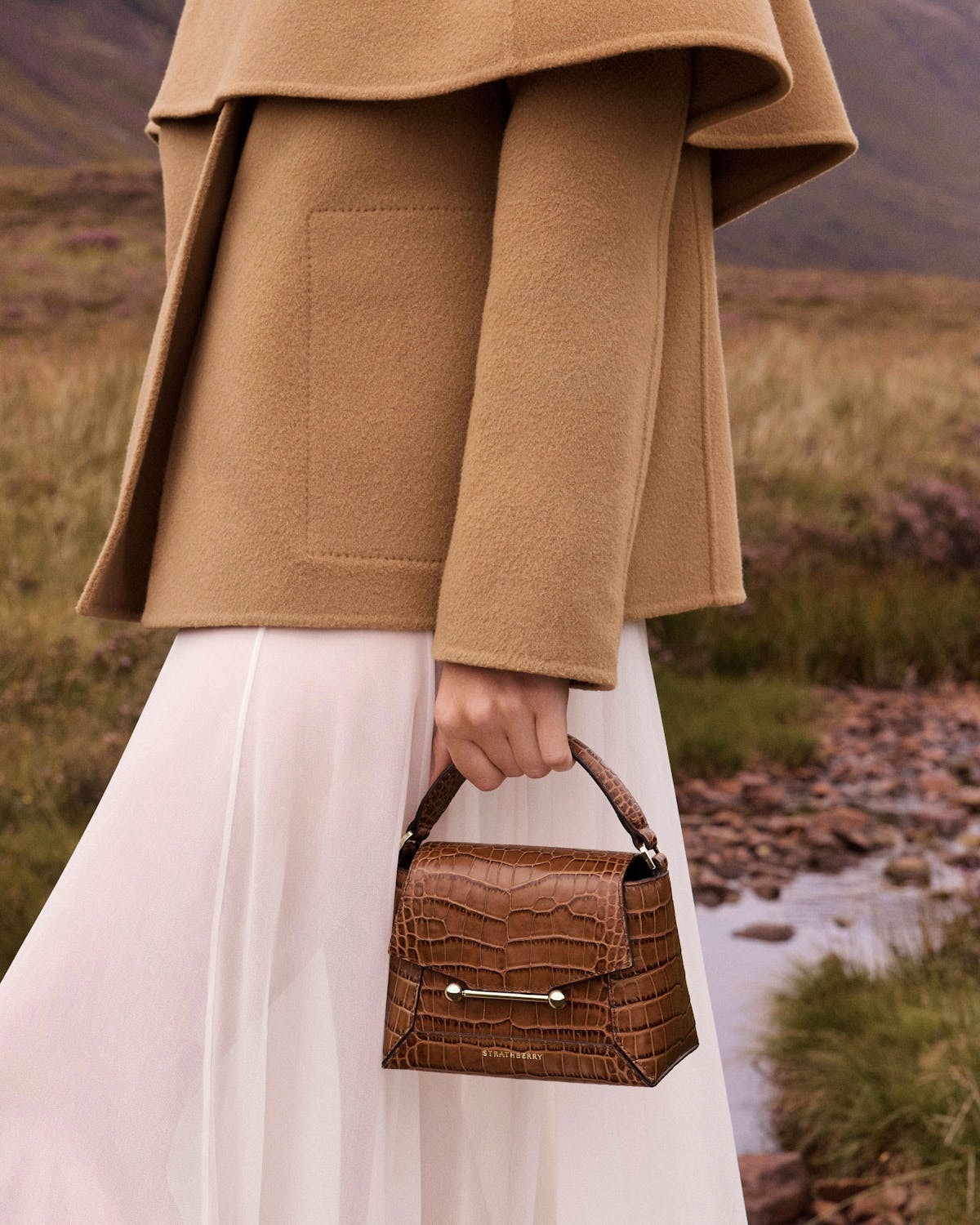SS25コレクションに新しく登場した贅沢でソフトなエンボス加工のクロコダイルレザーはイタリア製。この素材を特に柔らかくしなやかにするために、手作りのツートーンディッピング技術を採用しています。