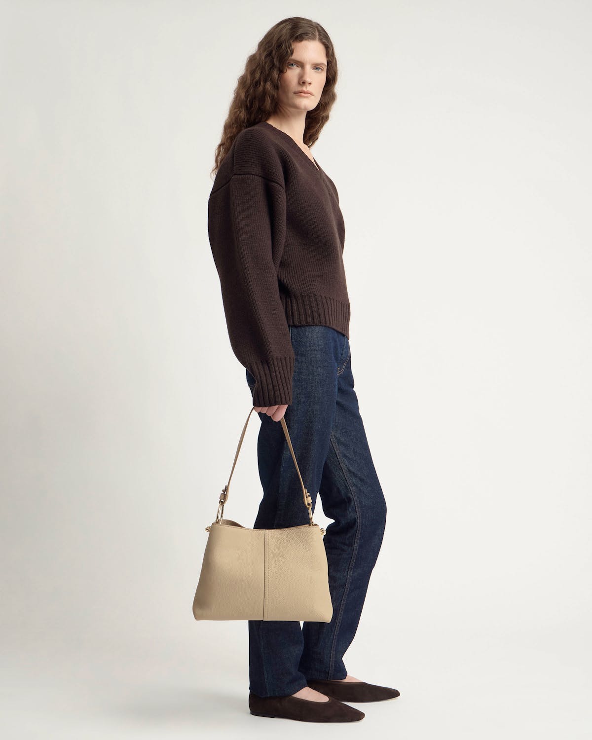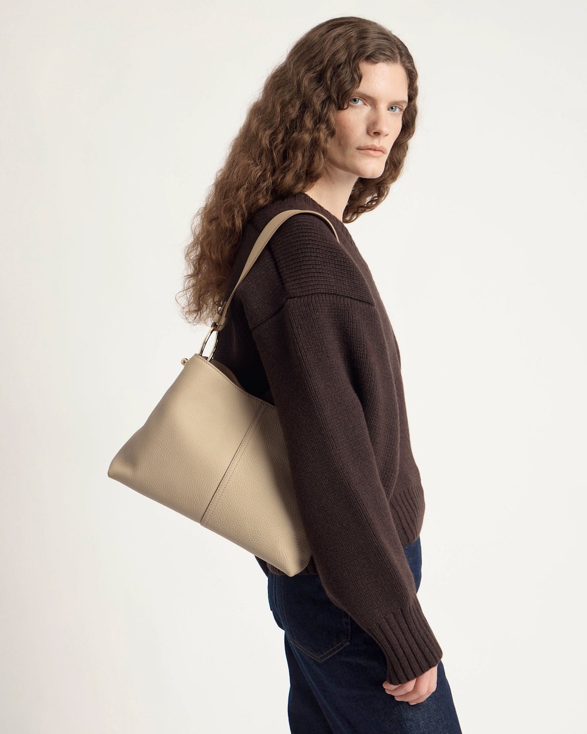 柔らかなシャンパンベージュの輝きを放つ新カラー、サンド。温かみがありながらもニュートラルなトーンは季節を問わず活躍します。手つかずの海辺や果てしない砂丘を思わせる色合いを、リラックス感のあるスタイリングでお楽しみください。