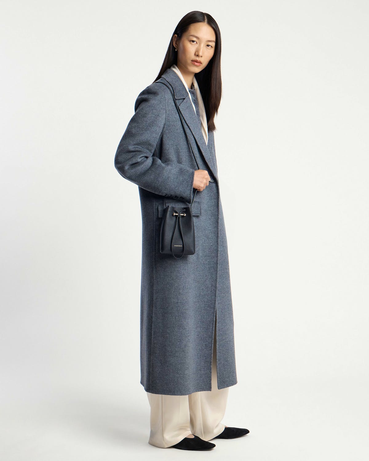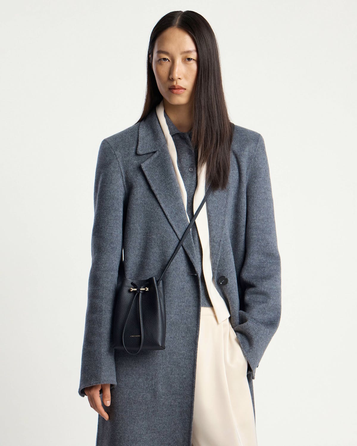 こちらのバッグの重量は 0.148kg (0.3lbs) 、着用中のモデルの背丈は 178cm (5'10") です。ストラップの長さは120cm (47.2") で。
